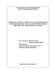 Nghiên cứu hành vi mặc cả của người tiêu dùng sản phẩm may mặc tại các chợ truyền thống trên địa bàn thành phố Nha Trang : Nghiên cứu Khoa học K06 / Nguyễn Phi Luân, Trương Võ Phương Duyên; Phan Lê Diễm Hằng (GVHD)