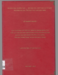 Lựa chọn bài tập thể dục Aerobic nhằm nâng cao thể lực cho nữ sinh viên ngành quả trị kinh doanh khách sạn nhà hàng Trường cao đẳng Văn hóa nghệ thuật và Du lịch Nha Trang : Luận văn Thạc sĩ Giáo dục học. Chuyên ngành Giáo dục Thể chất / Lê, Quang Chung ; Nguyễn Văn Đức (HDKH)