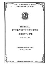 Lý thuyết và thực hành nghiệp vụ bar / Nguyễn Minh Hải (Ch. b), Lê Trần Tuấn Khánh Hòa : Đại học Khánh Hòa, 2019182tr. ; 27cm.Phần lý thuyết: Giới thiệu tổng quát về quầy bar, cơ sở vật chất trang thiết bị trong quầy bar, các loại thức uống không cồn và có cồn, pha chế và phục vụ cocktail, mocktail. Phần thực hành: Sắp đặt, bài trí, vệ sinh quầy bar, phương pháp trang trí cho ly cocktail, pha chế phục vụ đồ uống có cồn và không cồn, pha chế và phục vụ cocktail