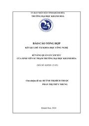 Kĩ năng quản lí cảm xúc của sinh viên sư phạm trường Đại học Khánh Hòa : Báo cáo tổng hợp kết quả đề tài khoa học công nghệ / Huỳnh Thị Bích Thuộc; Phan Thị Thùy Nhung